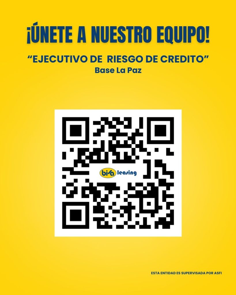 ¡Queremos que formes parte de nuestro equipo!Impulsa tu trayectoria profesional como Ejecutivo deRiesgo de Crédito, en la ciudad de La Paz.Escanea el QR para más información.https://lnkd.in/drj73Ejy