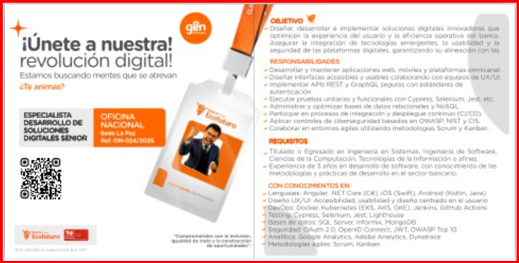 🌟 Postúlate ahora y demuestra todo tu potencial en el siguiente enlace: https://lnkd.in/d8a8V_Vh