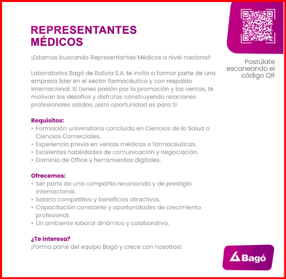 ✅ Postulación a REPRESENTANTE MÉDICO sigue este enlace: https://lnkd.in/enrG38sa