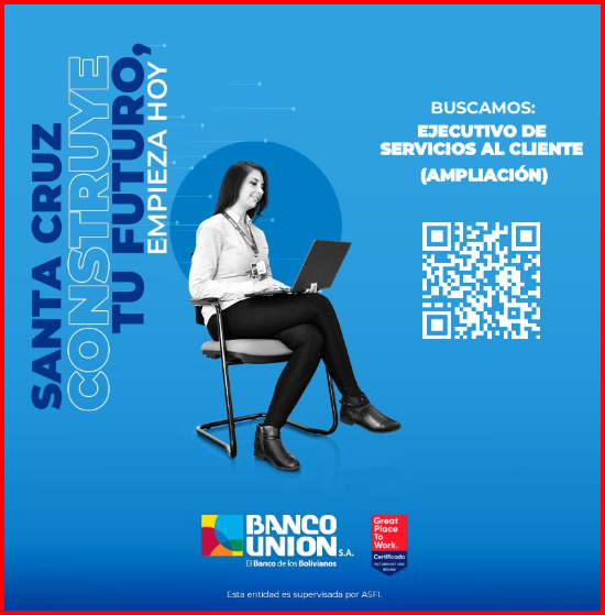 Se parte de nuestro equipo y potencia tus habilidades en el banco más grande de Bolivia. 🥇