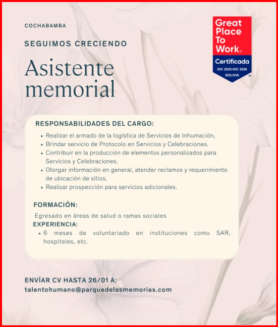 📩 Envía tu CV a: talentohumano@parquedelasmemorias.com