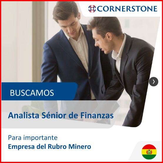 En Cornerstone Bolivia nos encontramos en la búsqueda de un(a) Analista Senior de Finanzas para una importante empresa del Rubro Minero.