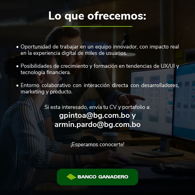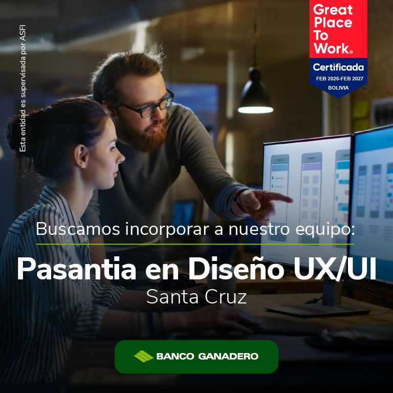 Estamos buscando un Pasante de Diseño UX/UI para sumarse al equipo en Santa Cruz.