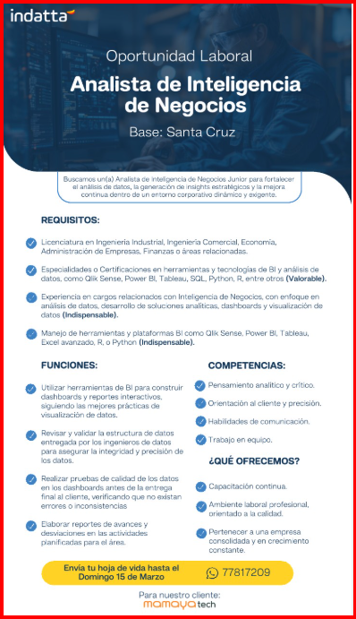 📢 ¡𝗢𝗽𝗼𝗿𝘁𝘂𝗻𝗶𝗱𝗮𝗱 𝗹𝗮𝗯𝗼𝗿𝗮𝗹 𝗲𝗻 𝗠𝗮𝗺𝗮𝘆𝗮𝗧𝗲𝗰𝗵! con Base en Santa Cruz.