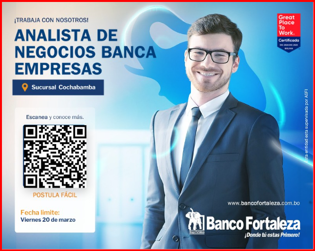 🖋   ANALISTA DE NEGOCIOS BANCA EMPRESAS – SUCURSAL COCHABAMBA