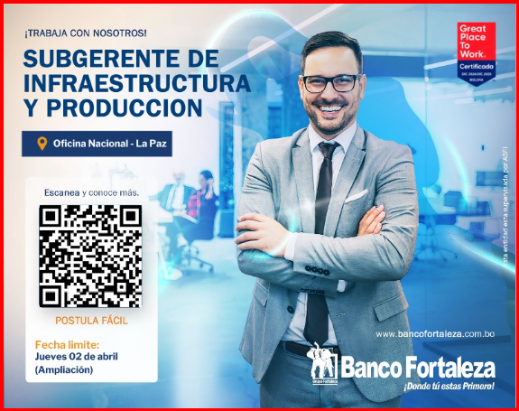 🖋   SUBGERENTE DE INFRAESTRUCTURA Y PRODUCCION – OFICINA NACIONAL (LA PAZ)