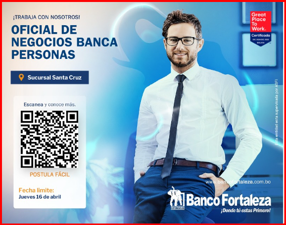 🖋 OFICIAL DE NEGOCIOS BANCA PERSONAS – SUCURSAL SANTA CRUZ