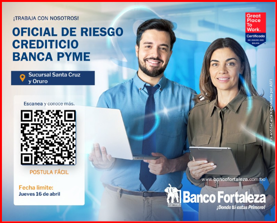 🖋 OFICIAL DE RIESGO CREDITICIO BANCA PYME – SUCURSAL SANTA CRUZ Y SUCURSAL ORURO